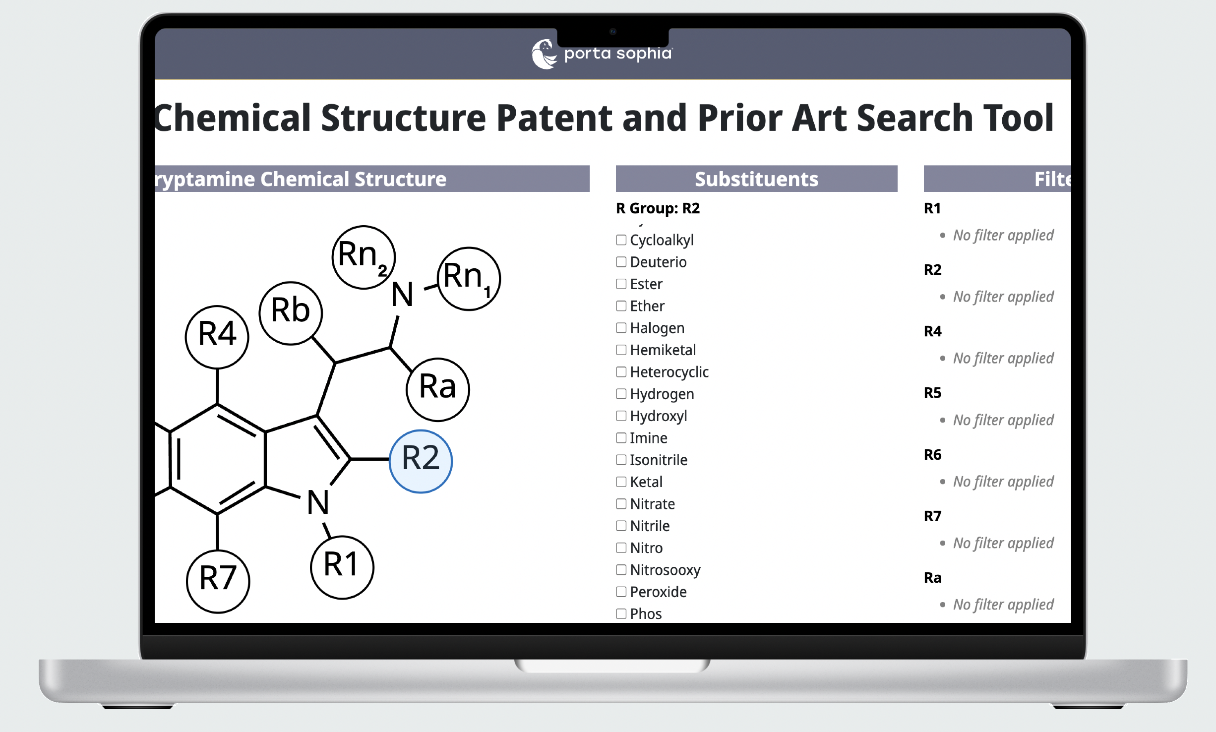 What: They needed to search for chemical structures and related substituents within Porta Sophia’s psychedelic prior art library.